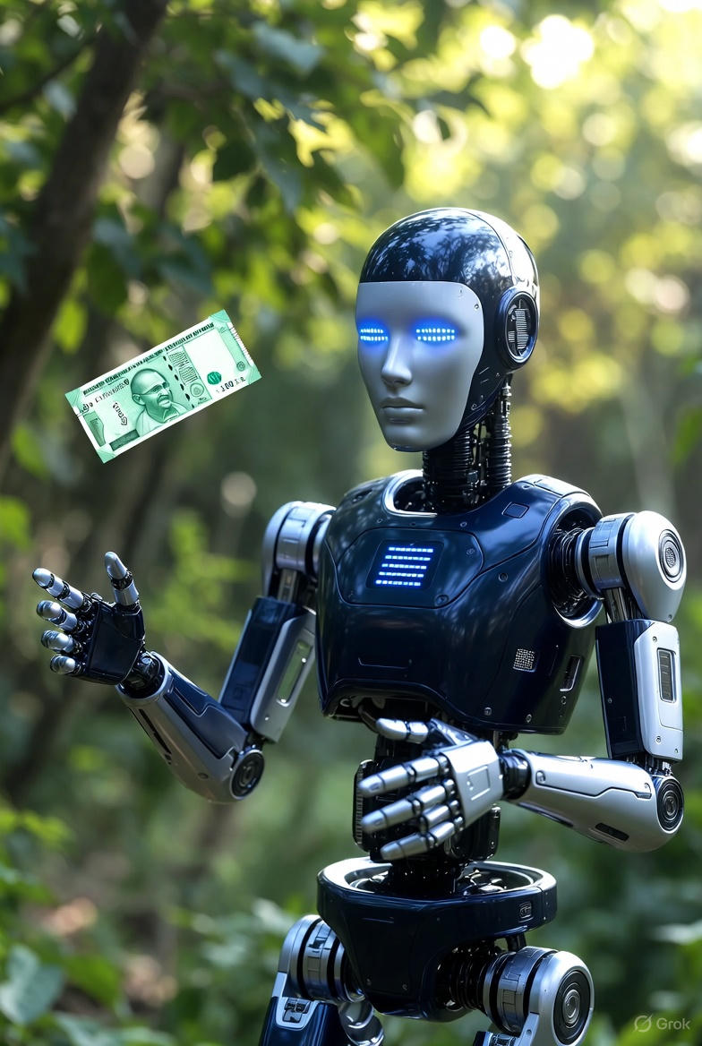 – प्रॉम्प्ट उदाहरण: a futuristic robot earning money online, digital art, 4k